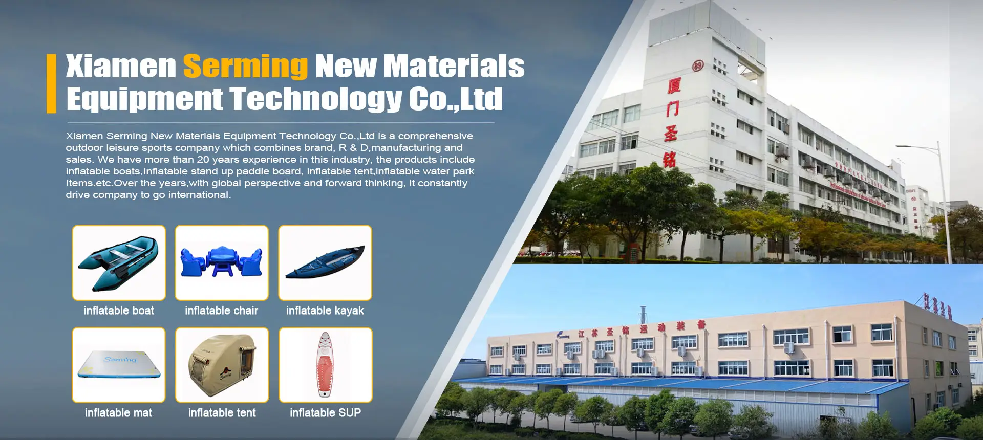 Its main products include inflatable paddle board, inflatable boats, water toys, tents,
